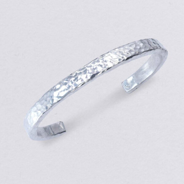 Wir fertigen den Armreif aus einer hochwertigen, silberhaltigen (<1%) Schmucklegierung aus Zinn. Das Vollmaterial Zinn lässt sich immer wieder ohne Qualitätsverlust aufpolieren. Durch die Handfertigung im eigenen Atelier entsteht eine individuelle Oberfläche, jeder Guss erhält einen persönlichen Charme. Somit erhältst Du im Grunde ein wertiges Unikat für schmales Geld.