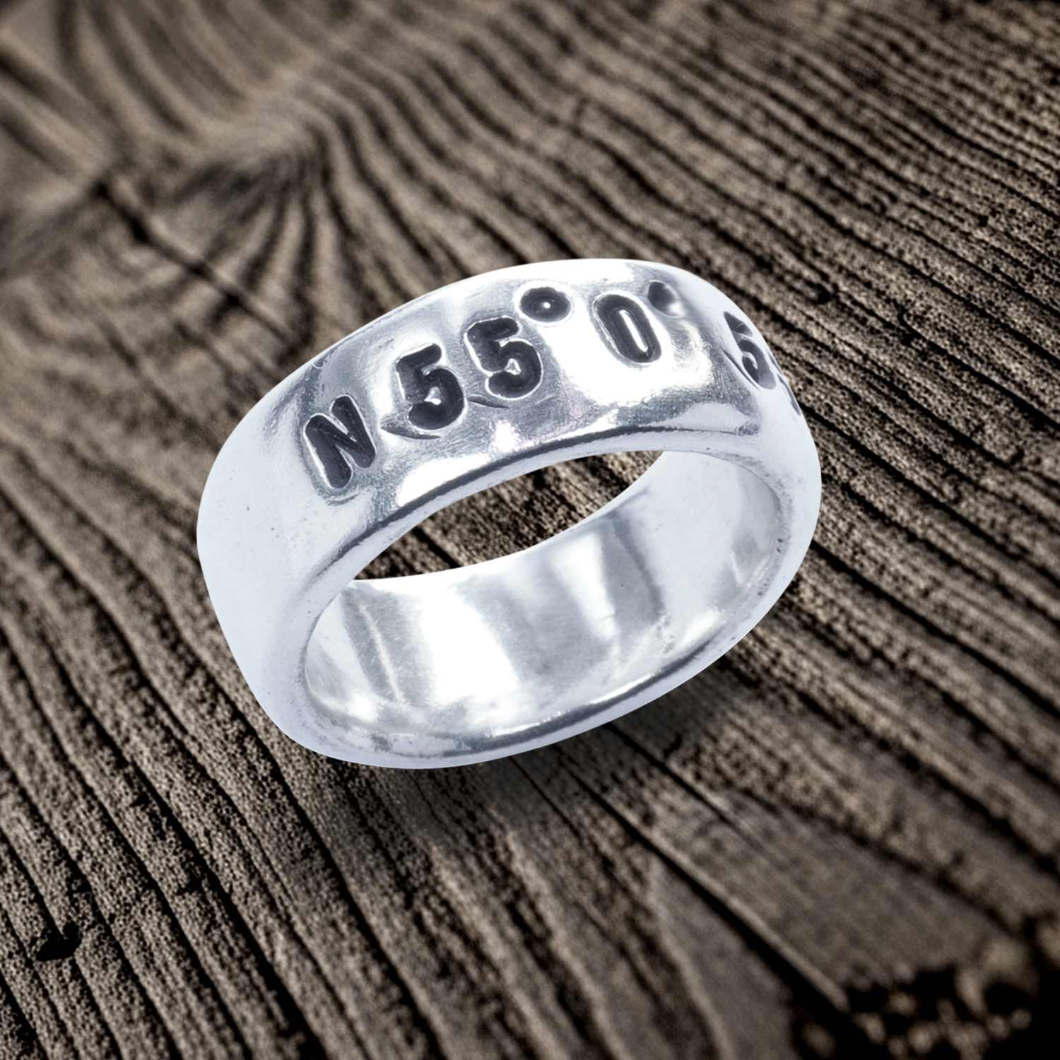 Gestalte einen Ring mit Deinen individuellen Koordinaten und finde Deine exakten Koordinaten heraus. Mit unserem Koordinatenfinder kannst Du mit Straßen- und Ortsnamen die passende Koordinaten ermitteln. Wir prägen diese dann mit Schlagzahlen in den Ring. Jeder Koordinaten-Ring wird einen ganz persönlichen Charme erhalten. One of a Kind – ein Unikat – wahrlich einzigartig!