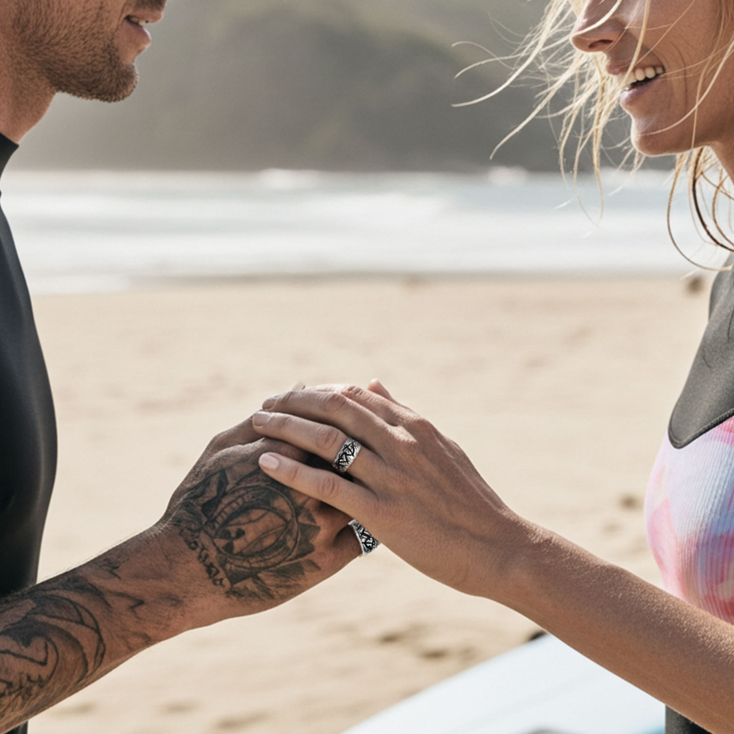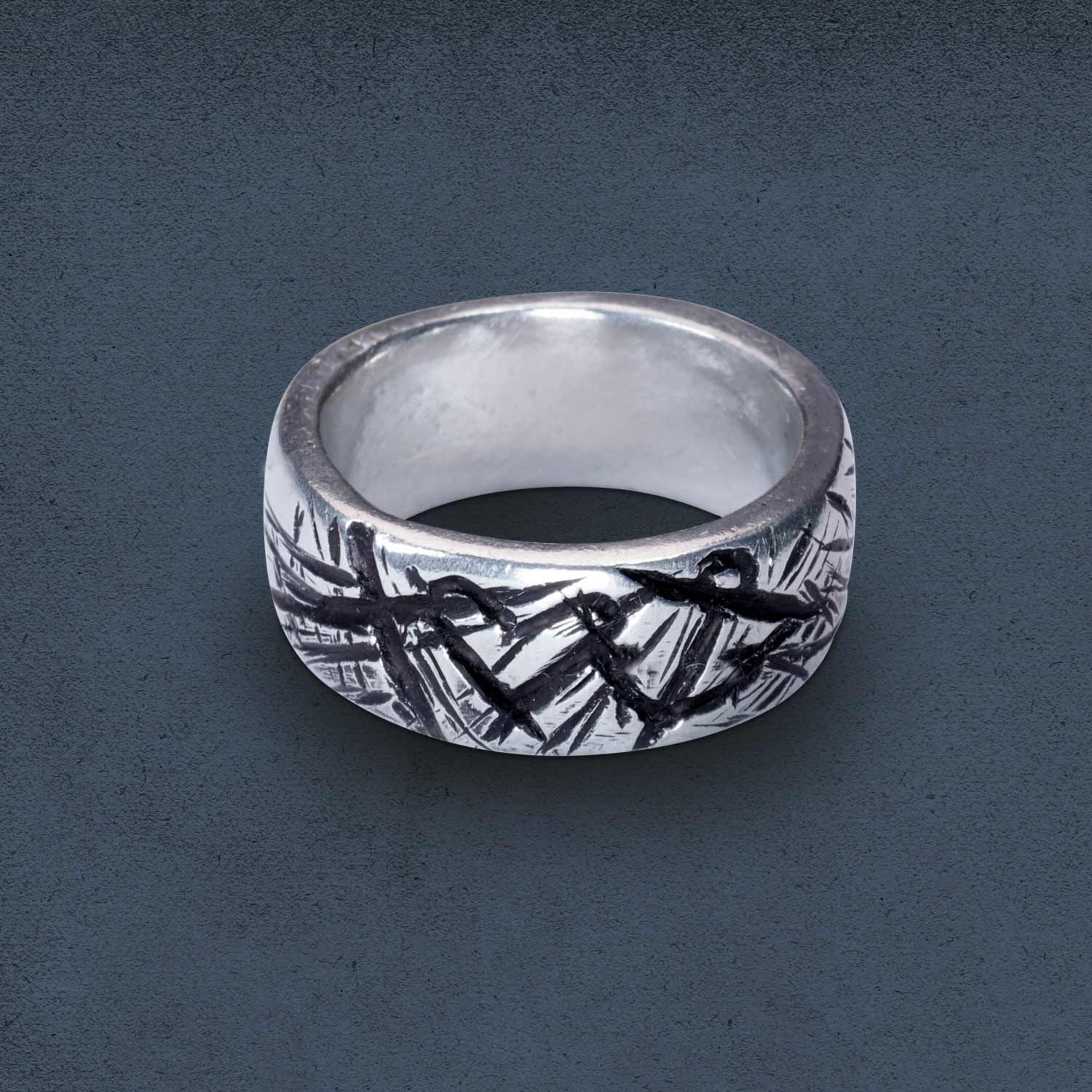 Wir fertigen den Bandring aus einer hochwertigen massivem 925er-Silber Legierung. Durch die Handfertigung im eigenen Atelier entsteht eine individuelle Oberfläche, jede Gravur erhält einen ganz persönlichen Charme und ist wunderschön anzusehen. Eine alternative Anfertigung in unserer Hauslegierung aus Zinn findest Du HIER!