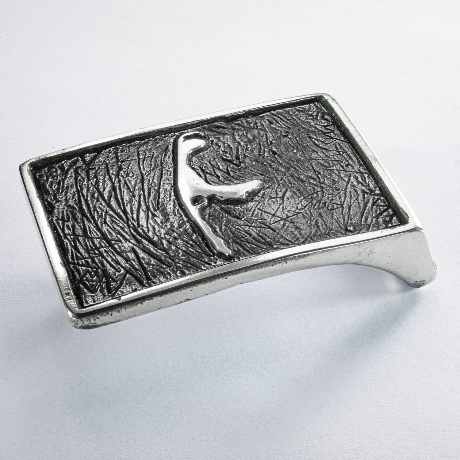 Durch die Handfertigung im eigenen Atelier entsteht eine absolut individuelle Oberfläche. Jeder Guss erhält dadurch einen ganz eigenen, persönlichen Charme. Die Gürtelschließe ist geeignet für Gürtel bis 4 cm Breite. Die Schnalle kommt mit Bügel und Dornbefestigung eckig im Format von ca. 7 x 5 cm.