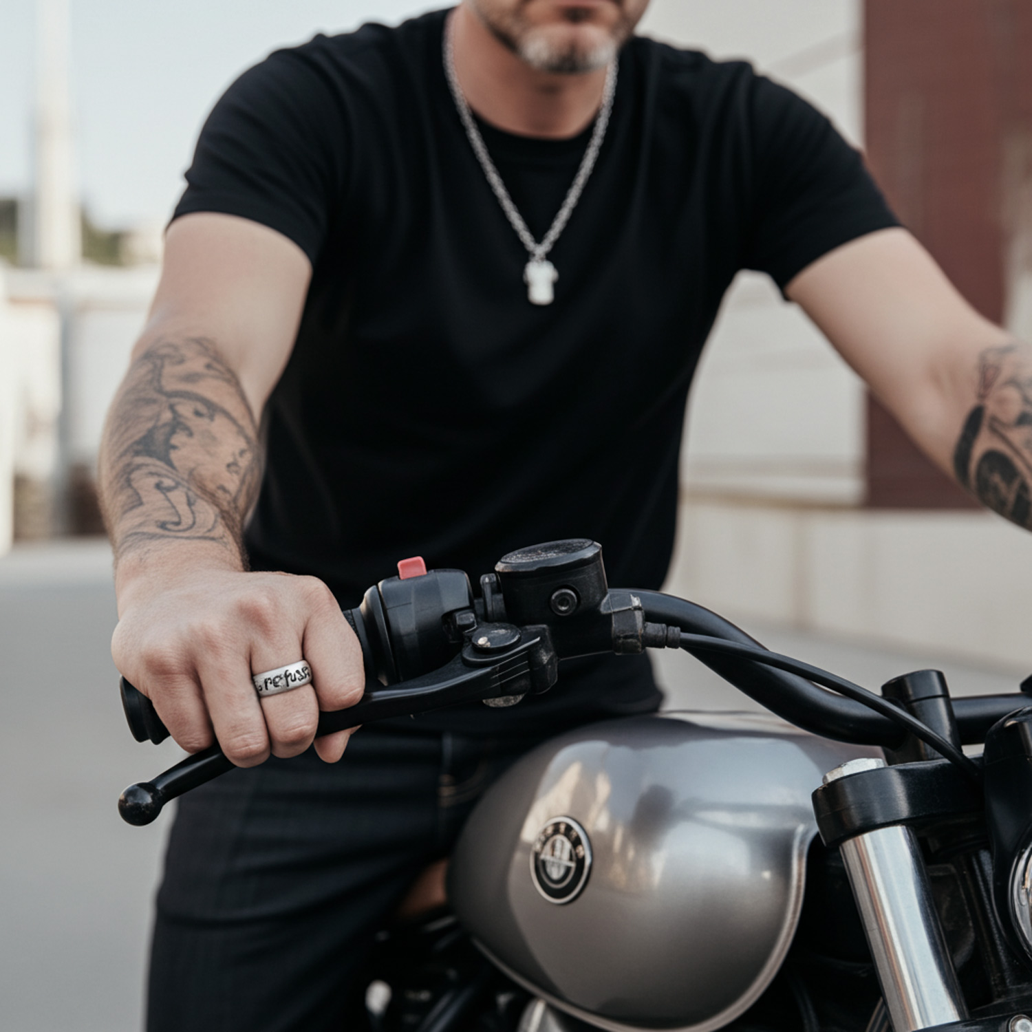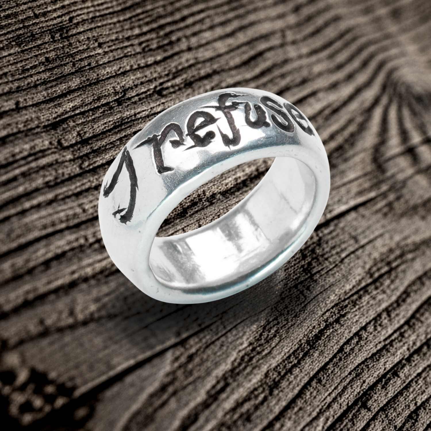 Von Hand graviert: Dieser Ring ist ein echtes Unikat, denn durch 100 % Handarbeit in allen Arbeitsschritten ist sogar jeder Schriftzug einzigartig. Ein echt kraftvolles Fingerschiff von Neptunsgeschmeide. Dessen ungeachtet kommt der Bandring „I refuse to sink“ an schmalen und zarten ebenso gut wie an kräftigen Händen. Darum eignet er sich auch für jedes Alter und jedes Geschlecht. Im Grunde ein perfektes Geschenk für jeden Anlass, oder? Natürlich auch durch die Möglichkeit, eine zusätzliche Gravur auf der Innen- wie Außenseite anbringen zu lassen.