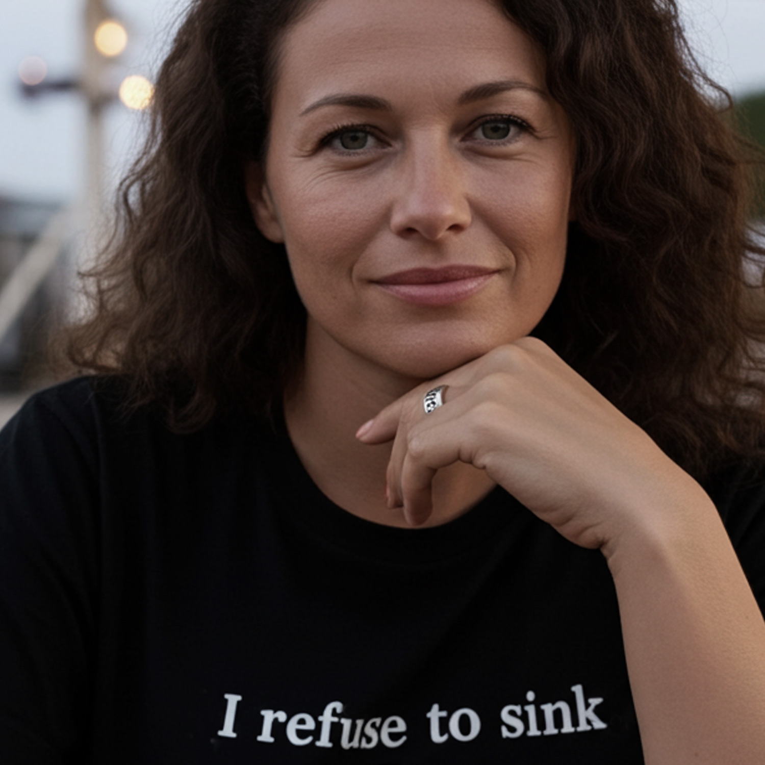 Kraftvoll, ohne aufdringlich zu wirken. Dieser Ring ziert mit Sicherheit viele Jahre deine Hand. Um so mehr, als „Ich weigere mich zu sinken“ – i refuse to sink – das ultimative Lebensmotto ist. Dabei spielt es keine Rolle, ob du Kapitänin an Bord eines Ozeanriesen bist oder die Flut der Akten dich überrollt. Trage den Ring bei besonderen Anlässen oder im Alltag – seine Botschaft wird dich stets begleiten und motivieren. Lass ihn dein persönlicher Reminder sein, dass das Leben voller Herausforderungen steckt, die es zu meistern gilt. Mit jedem Blick auf deinen Ring wirst du an deine innere Kraft erinnert, die dich auch in schwierigen Zeiten bestehen lässt.