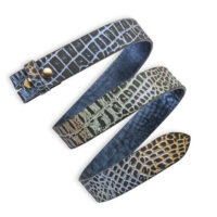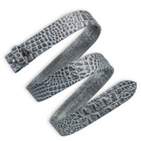 Motivgeprägter Kroko Wechselgürtel Robust, mit Druckknopfverschluss zum einfachen Wechseln der Gürtelschließe. Passt mit 4cm Breite ganz unkompliziert in Schlaufen von z. B. Jeanshosen. Ein Hauch Abenteuer und Exotik für die Hüfte! Der Ledergürtel Kroko aus sehr robustem Büffelleder ist durch seine Prägung eine wirkliche Alternative zu echtem Krokodilleder. Schick mit Artenschutz. Kraftvoll und verspielt zugleich, hebt der Kroko Wechselgürtel Robust Dein lässiges Outfit auf den nächsten Level. Dabei ist Kroko an jedem Geschlecht wirklich sexy. Zusätzlich bietet der Motiv Wechselgürtel mindestens so viele Kombinationsmöglichkeiten, wie ein Krokodil Zähne hat. Denn natürlich gibt es Deinen neuen Lieblingsgürtel bei uns auch in Farben für jedes Outfit und jede Stimmung. Wir beziehen dieses besondere Leder in feinster Prägung von einem deutschen Lieferanten.