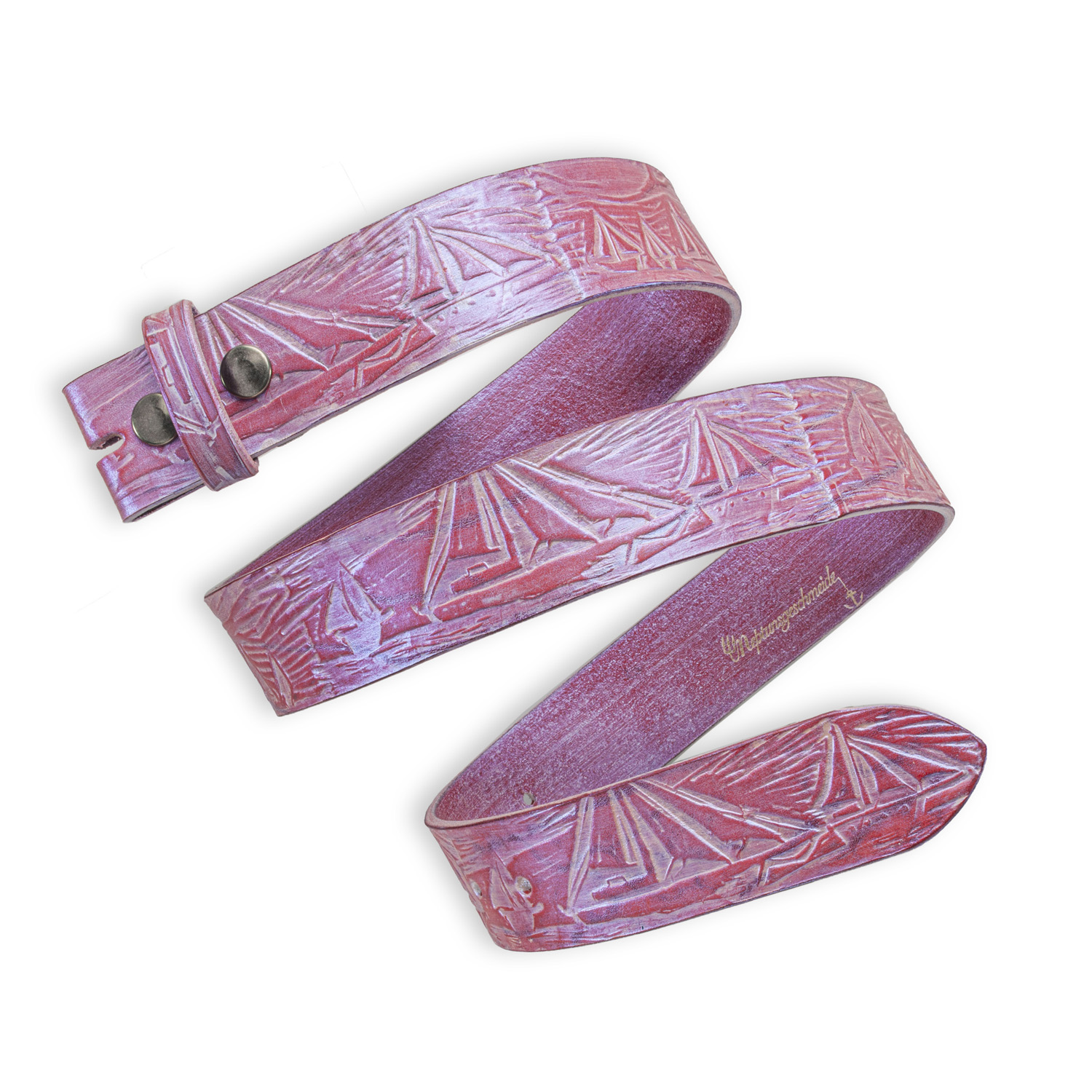 Handgeprägter Wechselgürtel  Segelschiffe aus Leder, mit Druckknopfverschluss zum einfachen Wechseln der Gürtelschließe. 4cm Breite. 100 % Handarbeit.