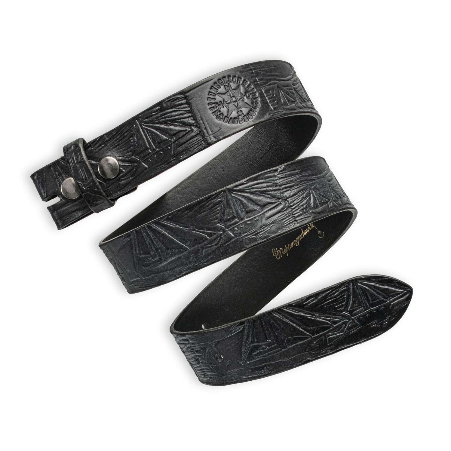 Jeder Wechselgürtel wird in der Länge cm-genau für Dich angefertigt. Das fühlbar plastische Motiv wird von Hand in das Leder geprägt, Farbe wie Prägung sind dauerhaft eingearbeitet und jeder Gürtel erhält mit der Zeit einen ganz persönlichen Charakter.